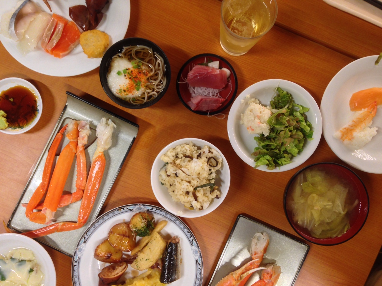 ご飯は夕食・朝食ともにバイキングで、アルコールを含む飲み放題が無料で付いているのがすごいです。バイキングの内容は超豪華というわけではありませんが、一般的な温泉ホテルの水準でした。