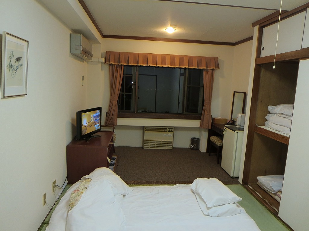 部屋は6畳和室、コンパクトにいろいろ揃っています。でもテレビは地デジのみBSは地方局一局のみ視聴できます。