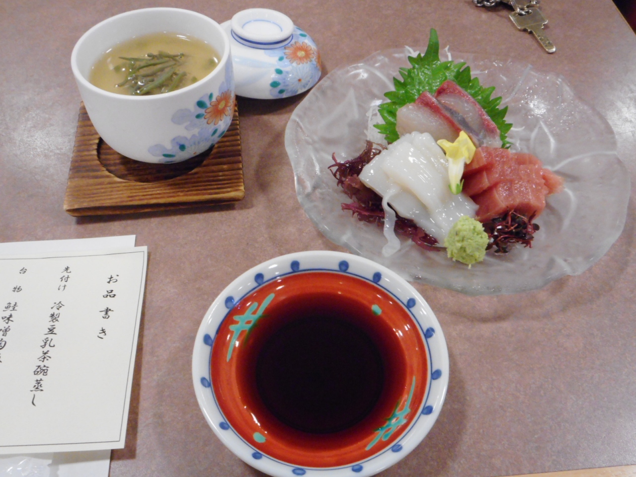 お食事は新鮮な海鮮類に加え山のもの そして名物の白海老のお吸い物など
