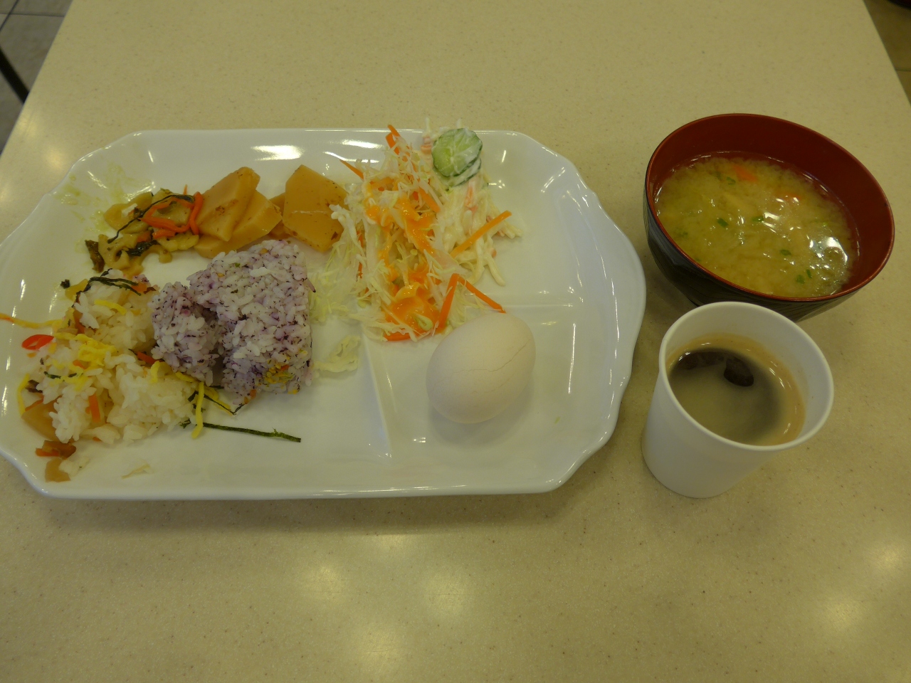 朝食もおにぎりお味噌汁そして手作りのおかずが準備されています。