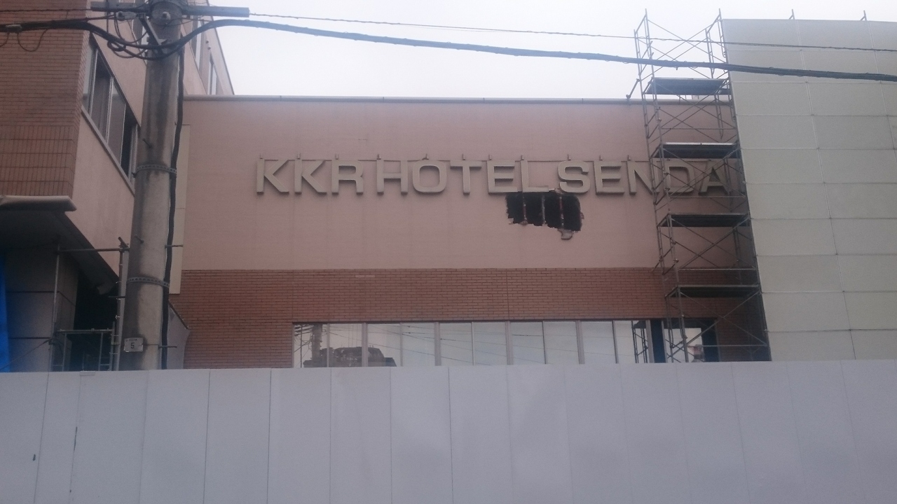 仙台駅から徒歩10分程度。地下鉄の広瀬通駅からも近い。飲食店が少ないビジネス街。コンビニは近くにあるし、繁華街も徒歩圏ではある。フロントは2階にあり、エレベーターは、一階からもアクセスできる。部屋のスライドドアに、旧式の鍵で使いにくい。