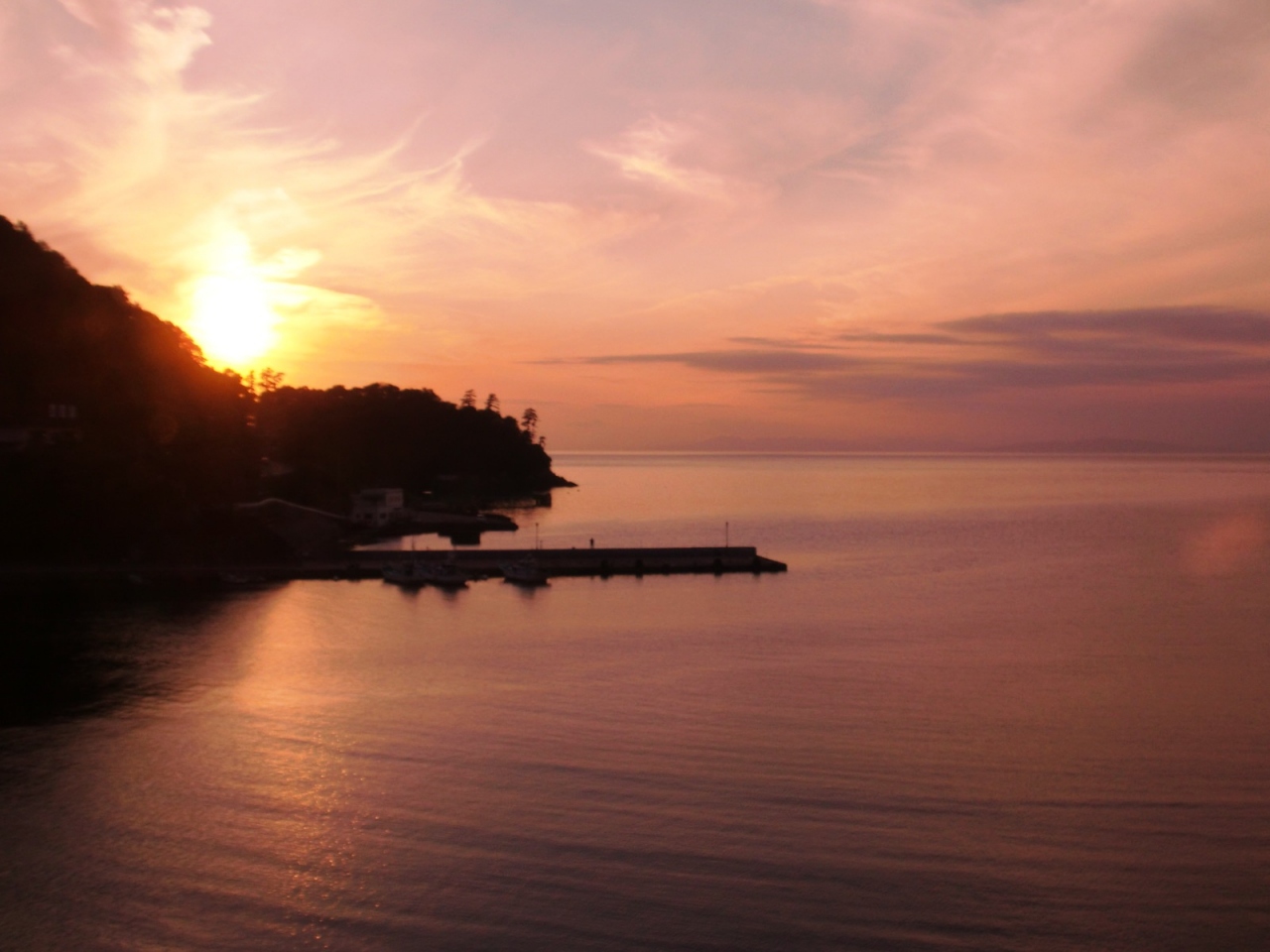 目の前が海で部屋からの眺望も抜群、沼津~土肥間のフェリーの行き来も見えます。夕方には穏やかな海と素敵な夕日も楽しめました。