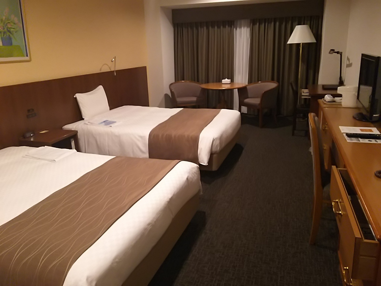 部屋は、シングルを予約したのですが、ホテル側からツインルームに変更依頼があり、広々とした部屋を一人で利用させてもらいました。