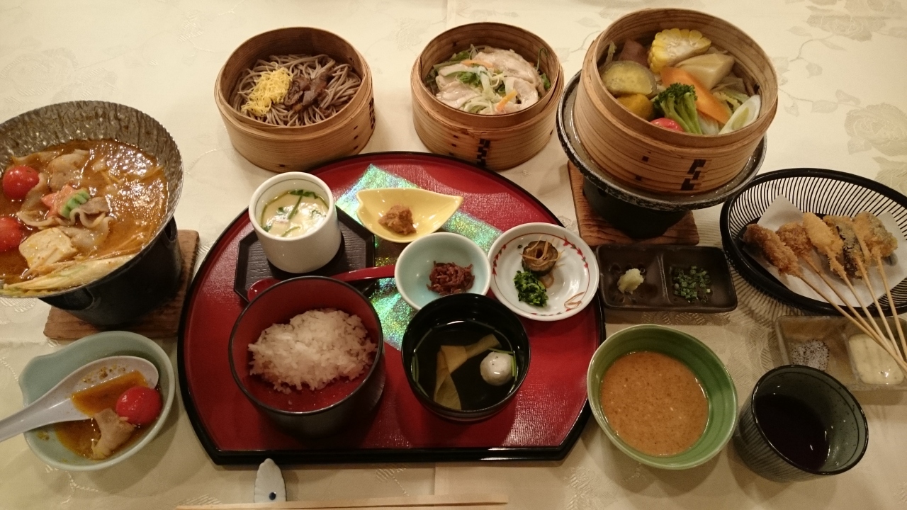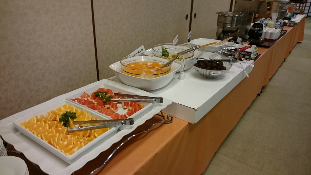 朝食は和洋食のビュッフェで、種類は多くて野菜の温泉蒸し・りゅうきゅうなどもありました。