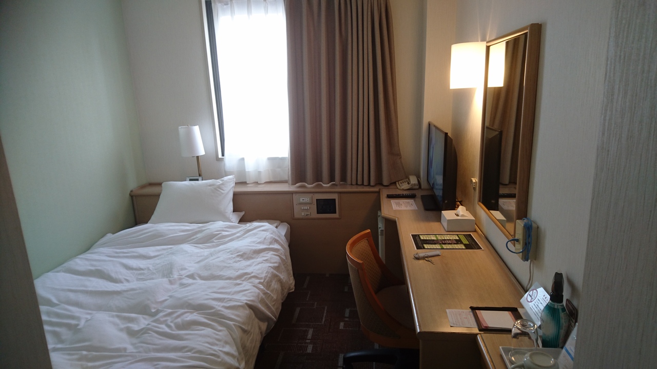 大阪は慢性的にホテル不足。時期によっては、某チェーンホテルの一室が25000円ででるほどだが、8600円で当該ホテル シングル禁煙に宿泊。まずはチェックイン時、本館フロントにいくと、別館のほうにお部屋、フロントありますとのご案内…めんどくさい。
