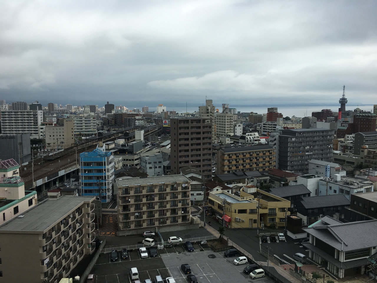 当初その名前からあまり期待せずに行きましたが、17階建てのとても綺麗なホテルでした。駐車場も無料で24時間出し入れ自由です。12階の部屋でしたが、別府湾や別府タワー、いくつも立ち上る湯煙が一望できました。温泉浴場もあり寛げます。今回は二食付きのプランで志高というバイキングレストランが朝、昼、晩と利用できます。だご汁やとり天など郷土料理もありました。
