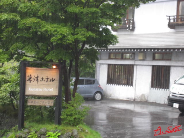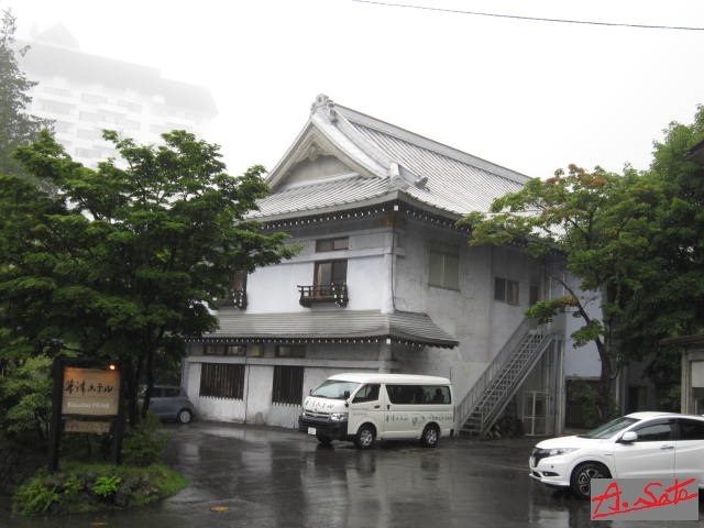 草津温泉の西の河原通りの終点右側高台というか斜面上にあります。斜面下には「片岡鶴太郎美術館」があります。終点の道路をぐぅっと右折し登っていくと左側に瓦屋根の和風建築がそれです。老舗ホテル?私は老舗旅館だと思います。古い建屋ですが掃除はしっかり為されています。純和室でした、窓を開けるときれいな空気が入ってきて気持ちいいです。
