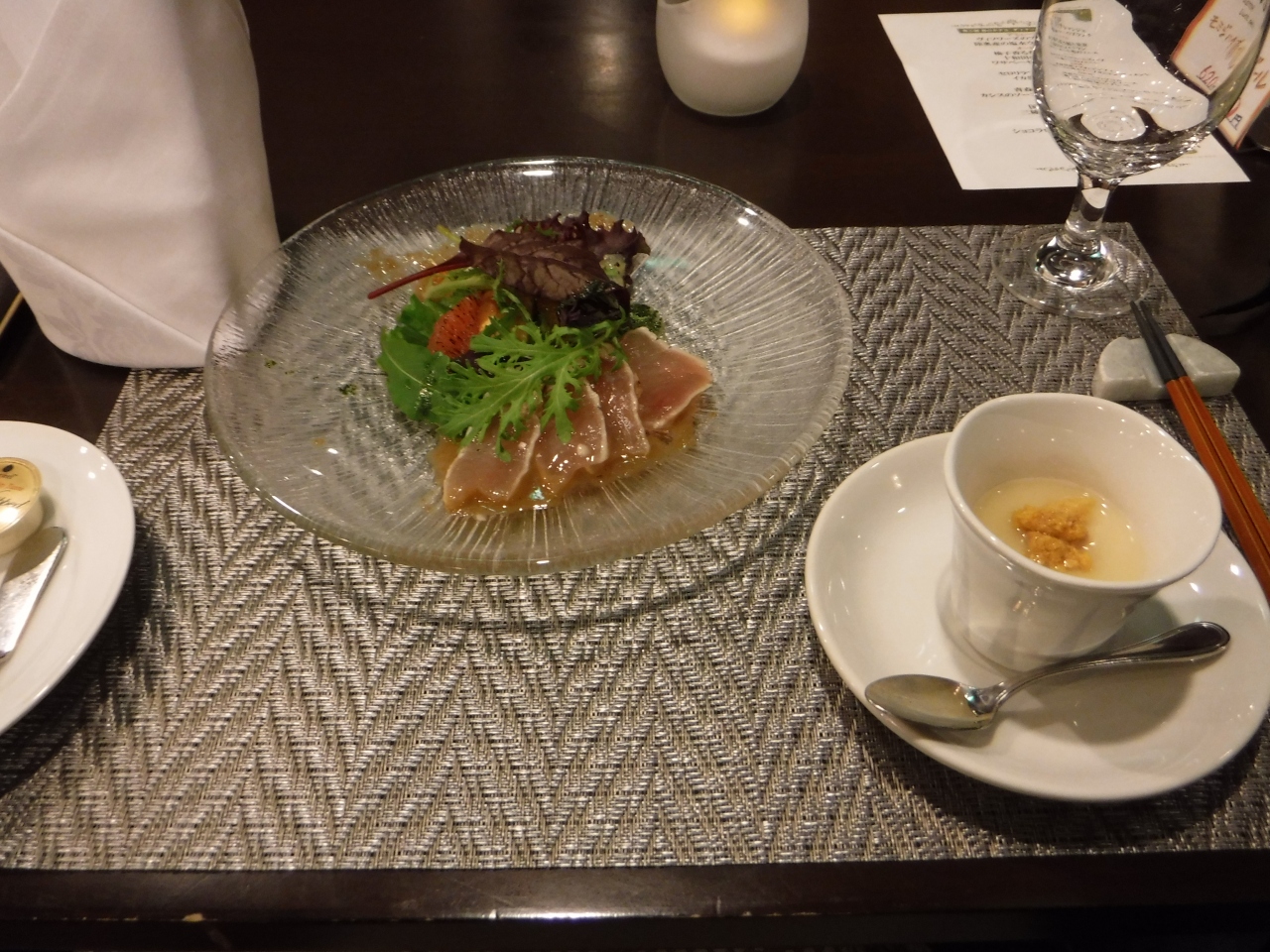 夕食は、野菜や果物、魚や肉を使ったコース料理で、とても美味しかったです。品数もデザート入れて6品に最後紅茶かコーヒーが付いて、お腹一杯で大満足でした。
