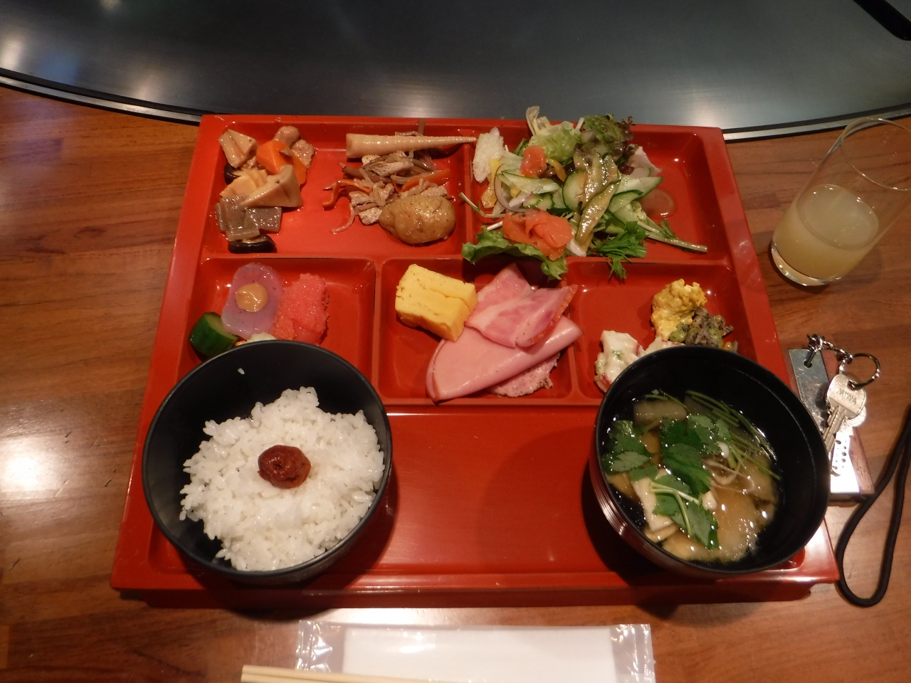 朝食は、ビュッフェでおかずは和食メインです。食後にコーヒーを飲もうとしたら切れていて残念でした。