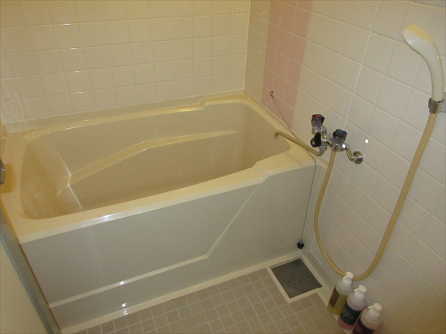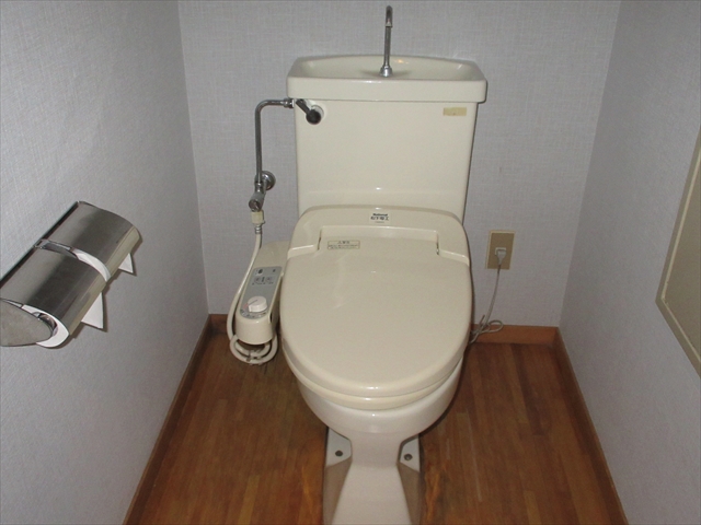 シャワートイレ完備.室内の浴槽はユニットバスですが,大きさは十分です.