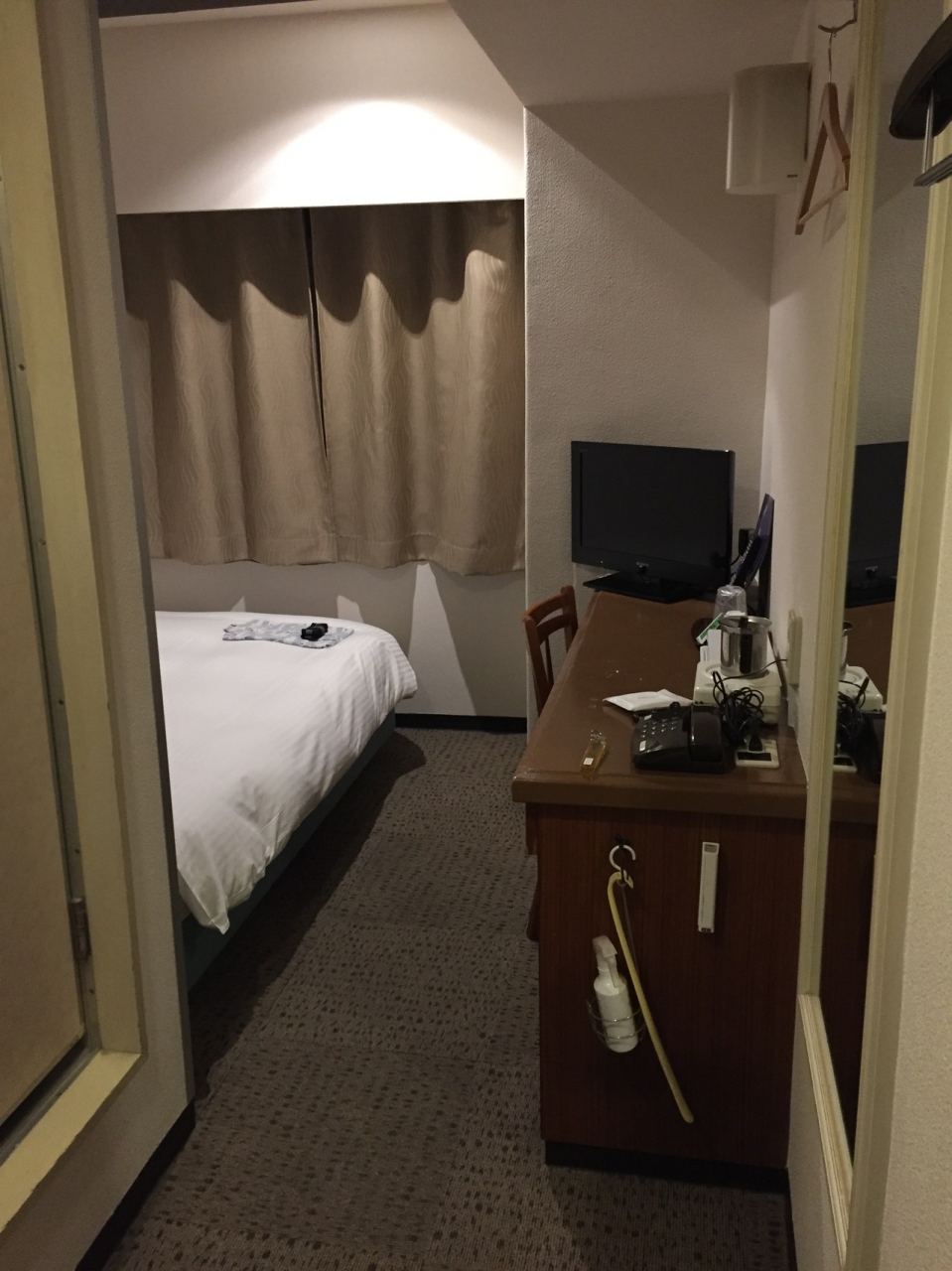 建物は古く、窓からの景色は隣のビルの壁。ウオシュレットも付いています。デスクで仕事をするには厳しいです。ただし料金的にはかなり安かったので、宿泊するだけで良いというのであれば問題ないと思いました。スタッフの方も笑顔で対応して下さいました。朝食施設はありませんので、すぐ近くのすき家(24時間営業)やタリーズコーヒーを利用するのも良いかもしれません。コンビニも近くにあります。立地も天文館すぐなので、飲みに行くにも非常に便利な場所でした。車で訪れたので駐車場を利用しましたが、夕方に入庫しようとした際はかなり待ってから入りました。