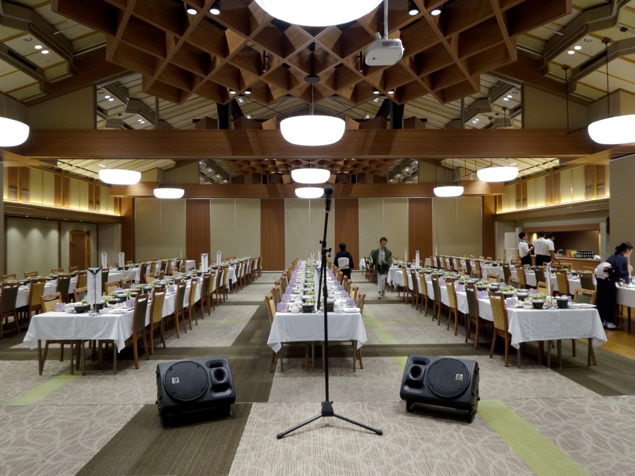 こちらに4日間にわたってお越しになる某信用金庫さんの「年金友の会・旅行会」のお客様を対象にしたご夕食時のご宴席アトラクションの音響業務。