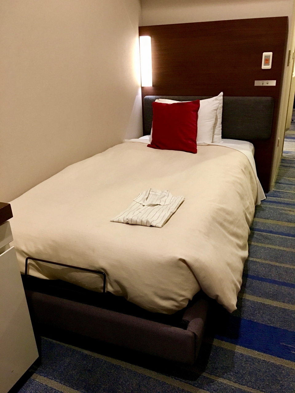 レディース・シングルはなくなったようで、今回は普通のシングルルームを予約しました。チェックインのときに「同料金でもっと広い部屋がある」と勧められ、いざ部屋に入ってみると、ユニバーサル仕様の部屋でした。ベッド幅はシングルと同じと言われたのですがどう見ても小さく、また、電動ベッドや手すりなどが病室のようで落ち着かず、元々予約していたタイプのお部屋への変更をお願いしました。即対応してくれたので、まぁよしとします。