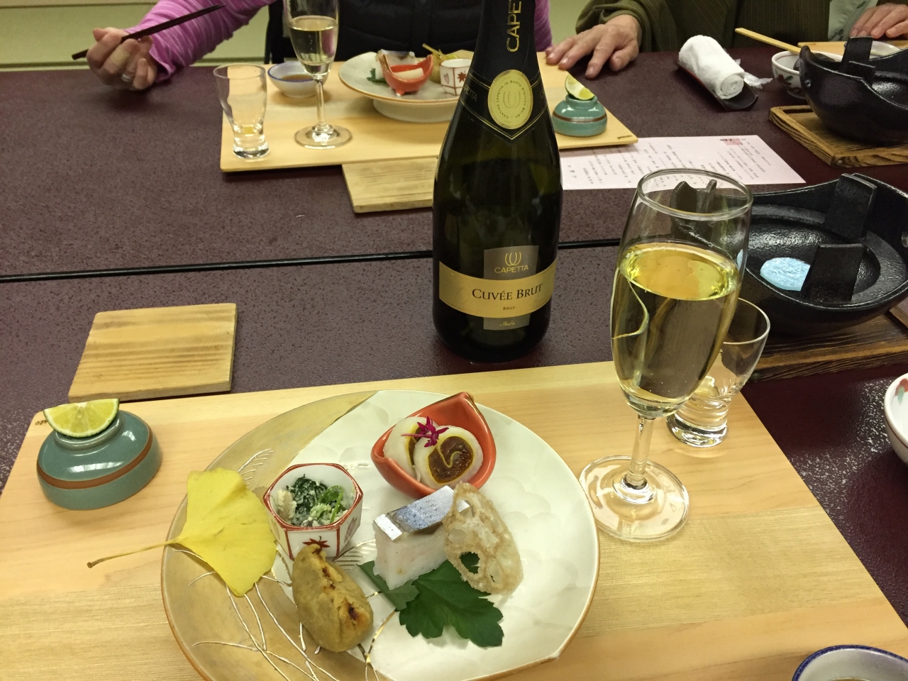 部屋は最上階の特別室を利用しましたが、和室が二間続きで大人5人には充分すぎる広さで、部屋の風呂は檜風呂で窓からの眺めも最高です。