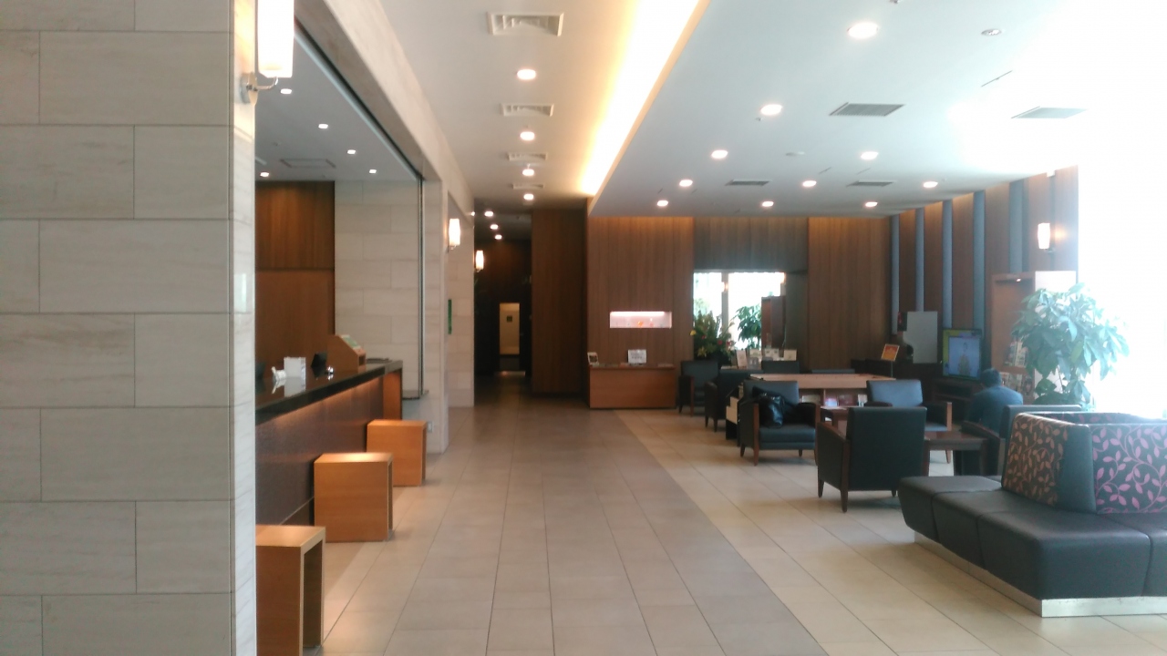中島公園駅から出るとグリーンの看板が見えてきます。ガラス張りのロビーは明るく清潔感があります。