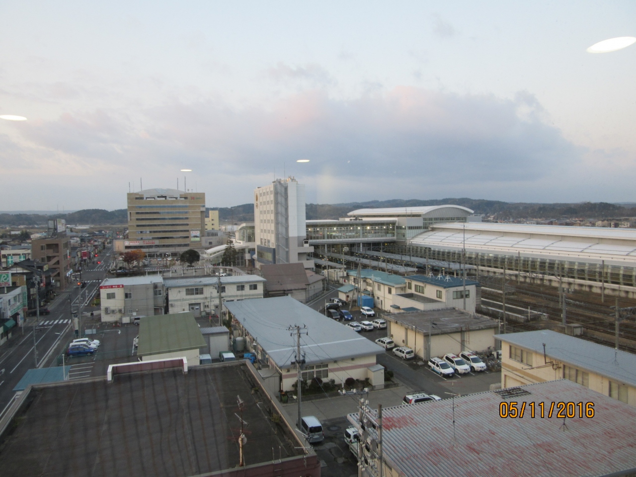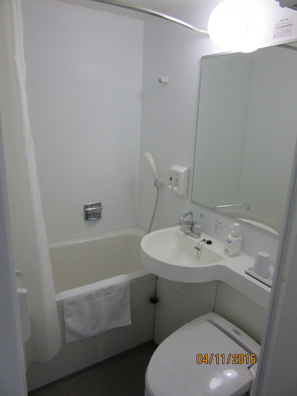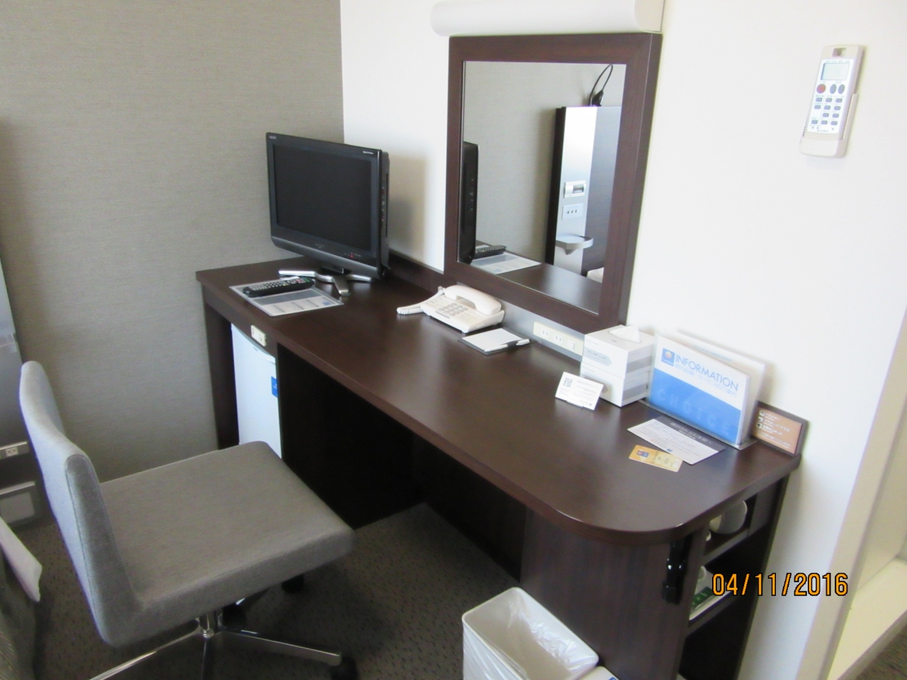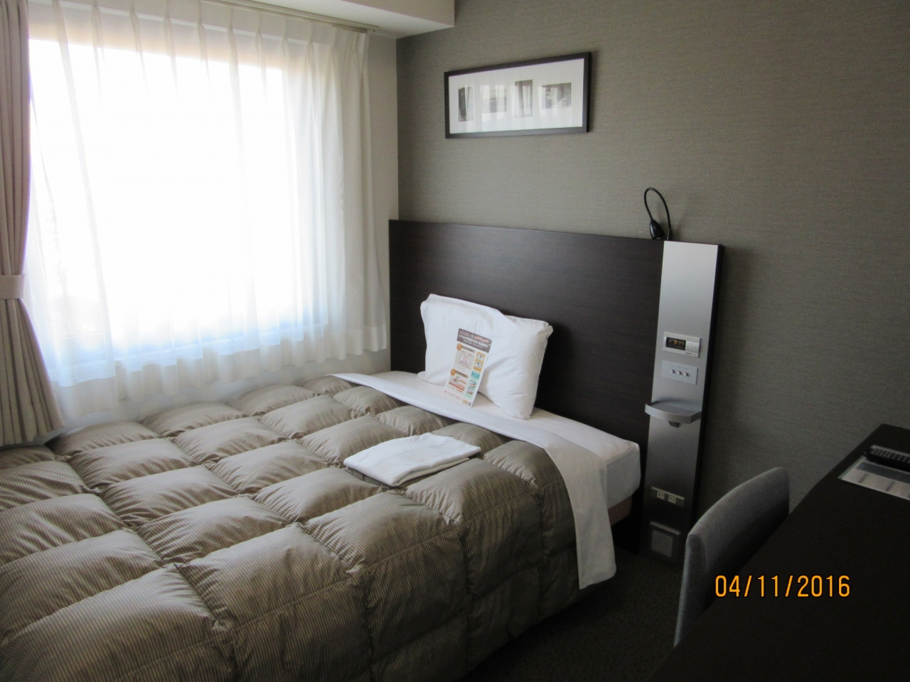 朝食バイキング付4,800円でコスパ良し。駅を出て左へ徒歩3分程度で駅から見える。黒と茶を基調とした落ち着いた色調の部屋で居心地よし。製氷機・レンジ・ランドリー等全て完備。このホテルの特長は手造り朝食。品数は多くなく質素だが、手巻き海苔のおにぎりとスープとみそ汁が美味くて元気になる。このホテルは同じ駅前ホテルチェーンでもギスギスして余裕のない【T】や全く付加サービスのない殺風景な【S】と比べてスタッフがとても感じが良く気持ち良く宿泊できる。