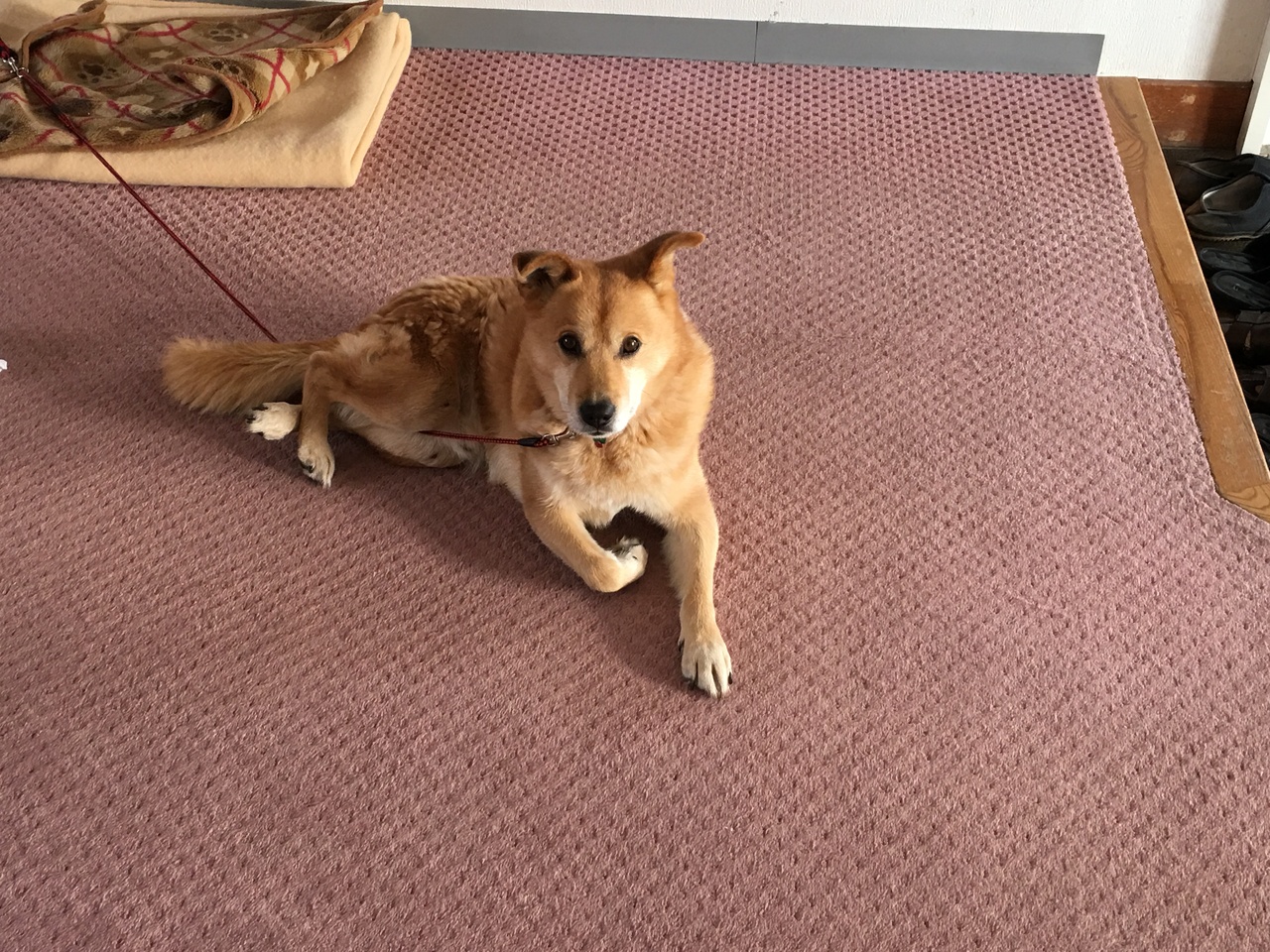 登別から洞爺湖に向かう道の途中にぽつんとある一軒宿です。玄関を入ると犬が迎えてくれました。