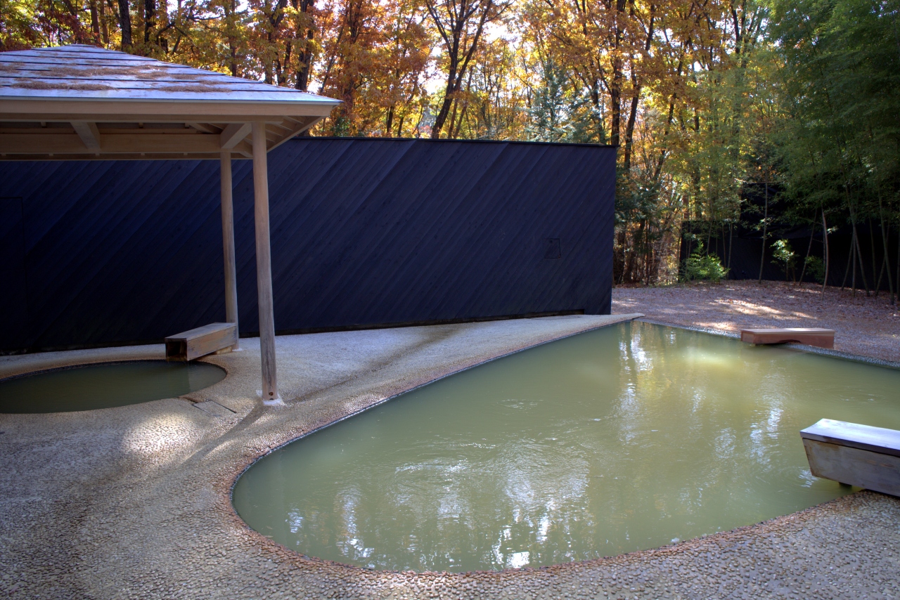ホテルから敷地の林を抜けて向かった露天風呂は広くて、ここでも空と黄葉を眺めながらのんびりお風呂に浸かれました。時間も90分と急ぐ必要もなくて良かったです。