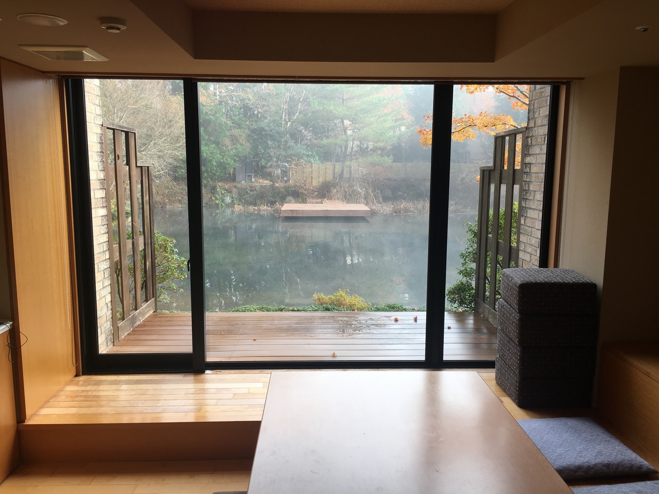 気軽に1泊で、と近場の箱根へ。食事にこだわりがなかったので、素泊まりで。徒歩圏内に飲食店、スーパー、コンビニがあったので便利でした。夕食は歩いて5分くらいの「ちゃいなはうす」さんへ。餃子の種類がいろいろあったので、大人はビールと、餃子の食べ比べ、子供はミニラーメン。餃子定食、ラーメン定食もありましたし、餃子のテイクアウトもできました。朝食もコンビニで調達したので、食事時間や混雑を気にすることなく、温泉を満喫し、のんびり過ごせました。1階の和室で、一面の窓の外は池。日が暮れてからチェックインしたので、1日目はまっくらでしたが、日が昇ると広々した池に鴨が泳ぎ、周辺の木が紅葉もしていて癒されました。 窓辺は掘りごたつになっていてテーブルも大きく、冷蔵庫、水屋が隣に配置され、飲んだり食べたりしながら寛ぐのにぴったりでした。ホテルでもらった食事マップには、他にも気になるお店があったので、また行ってみたいです。