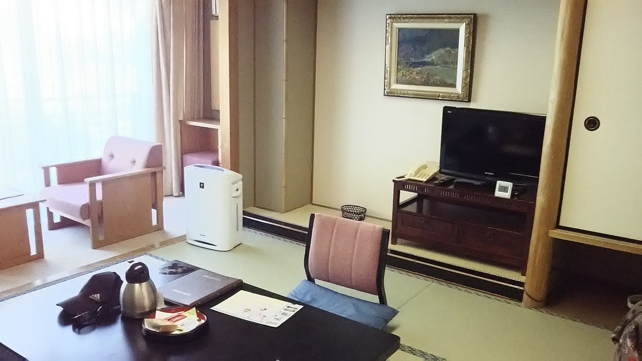 部屋は、すぐそばが川で、さらにそのすぐ先には、鉄道が走っており、風景としては、絶景とはいきませんでしたが、鉄道好きにはいいお部屋です。