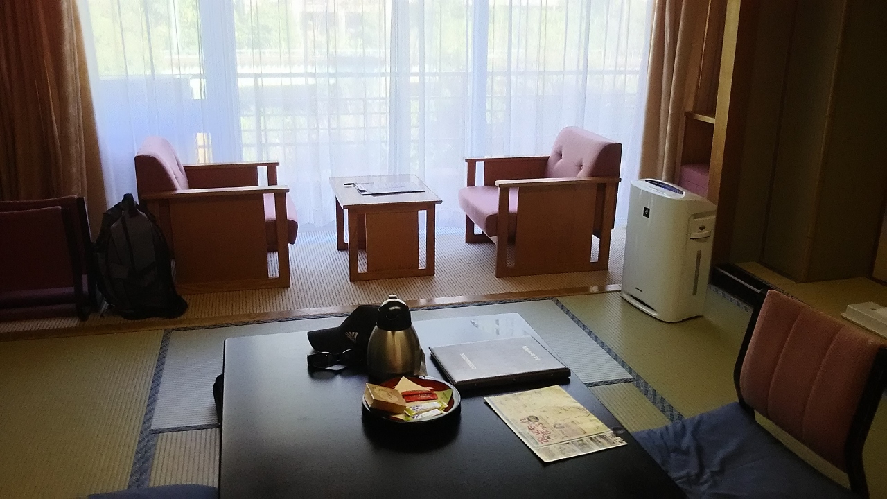 チェックインは、ロビーの椅子に座って、ドリンクをいただきながら、ゆっくり受付ができ、従業員さんとの会話から、温泉地に来たんだな~という実感が湧いてきました。