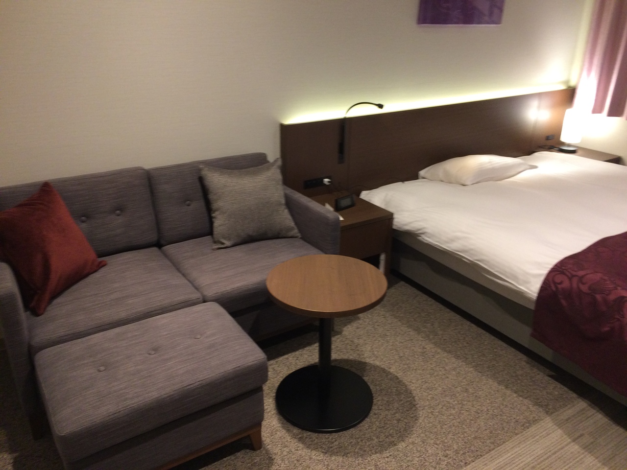 部屋は広めで、大通に出るのもすぐです。フロントと直結でサンクスがあり、便利でした!朝のブュッフェも色々ありよかったです!