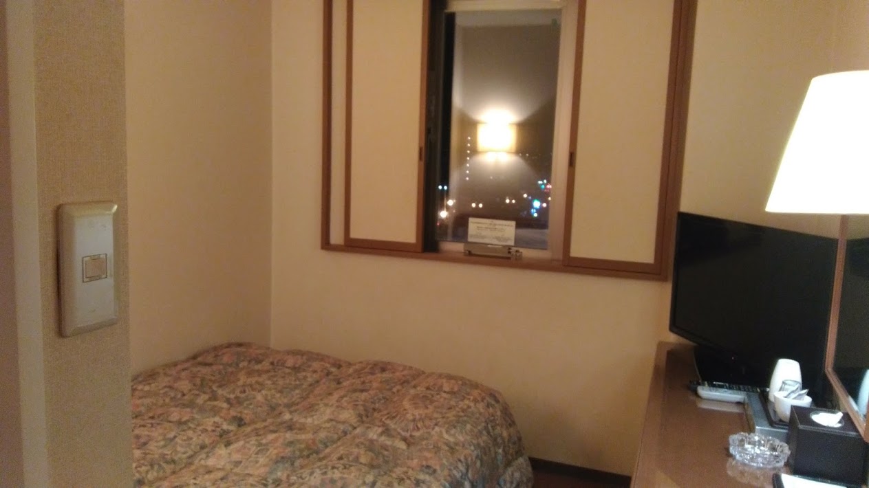 部屋は普通のビジネスホテルで特に問題なし、朝食は基本料金に含まれていて、和洋バイキングで充実している。