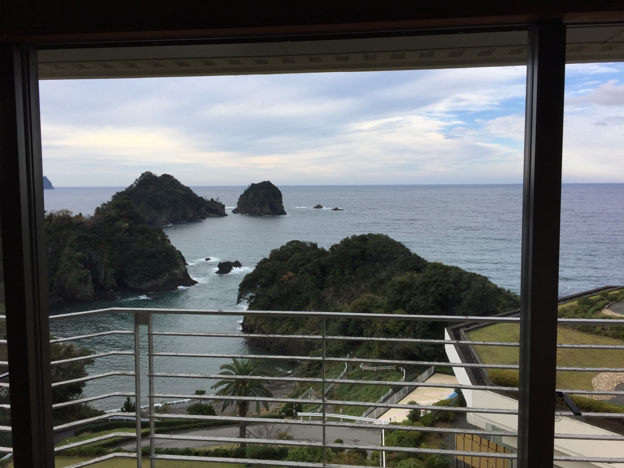 堂ヶ島の絶壁に沿って建てられているため、部屋からもロビーからも食事処からもどこからでも素晴らしい眺望です。