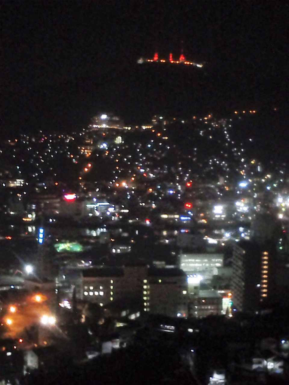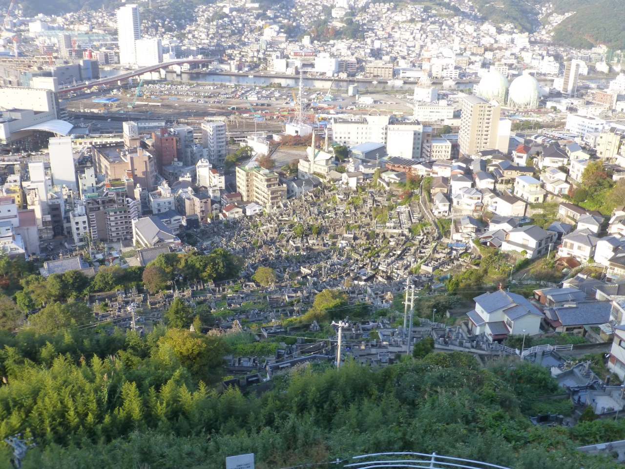 稲佐山…夜景で3個のテレビ塔/ホテル前の大きい墓地園。遂に入ったお風呂…畳敷き/夜景(^o^)