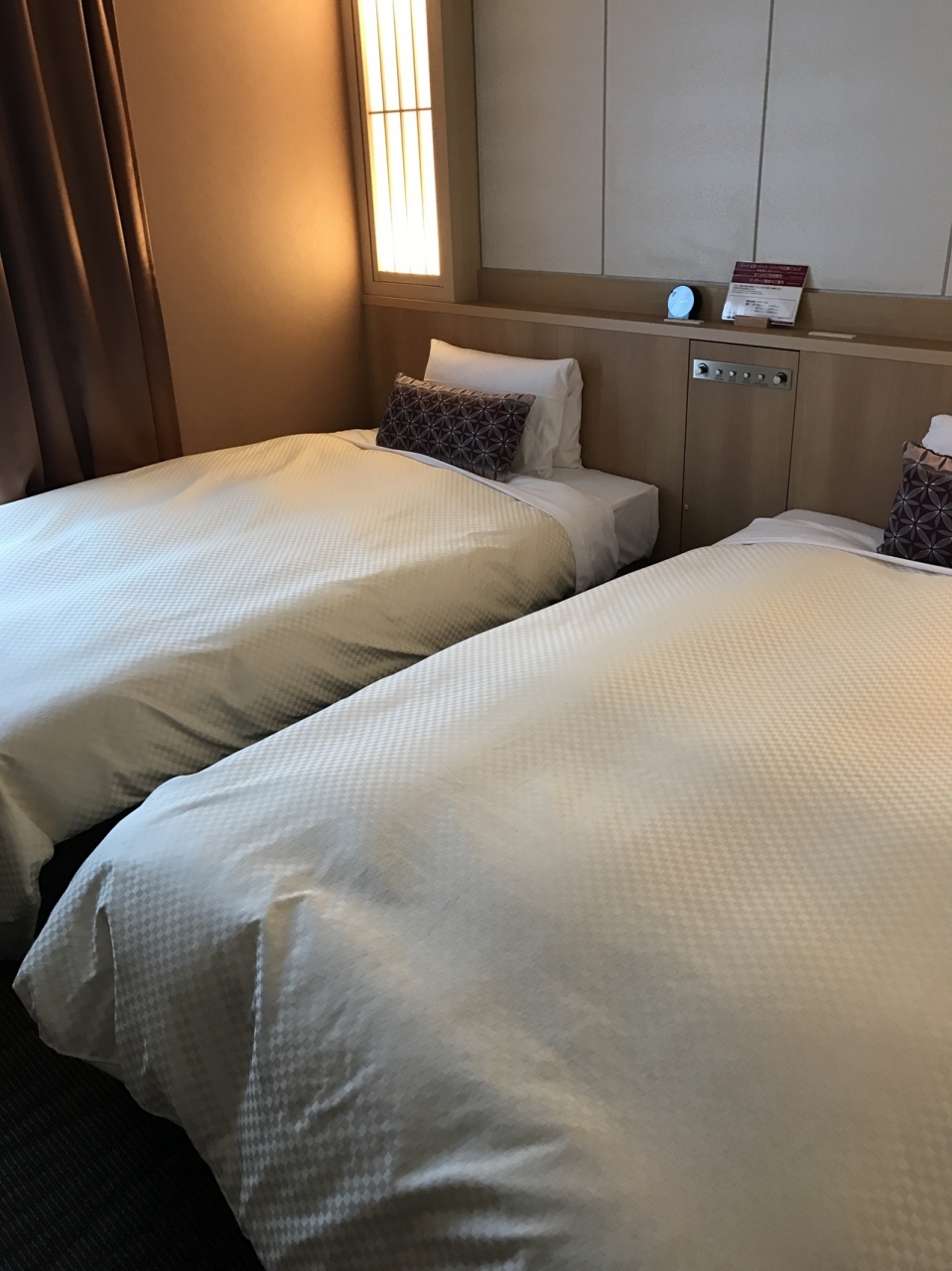 場所は地下鉄五条すぐでとても便利です。一階の朝食会場にもなるスペースでは、コーヒーなどが自由に飲めます。築年数が浅いためか部屋は綺麗です。朝食のバイキングも京都らしい品もあり、なかなか美味しかった。