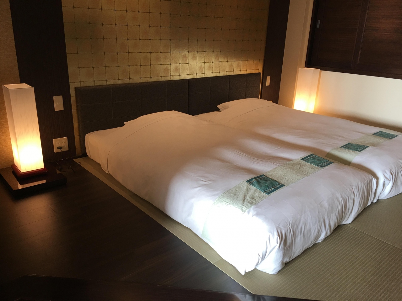 デラックス ツインに宿泊しました。ツインのお部屋なのにツインベッドの他に、畳の部屋にゆったりめの布団が2組あり、ベッドでも畳でも眠れるようになっています。大きい目の浴槽の他にシャワールームもあり、なんとも贅沢な宿泊でした。