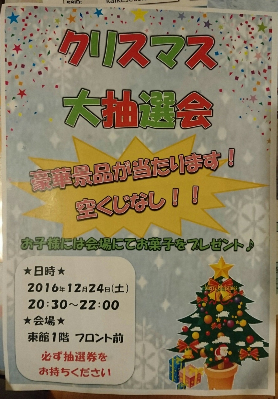 クリスマスイヴだったので、クリスマス大抽選会を行っていた。なんと2等の米子市民体験パックが当たった!