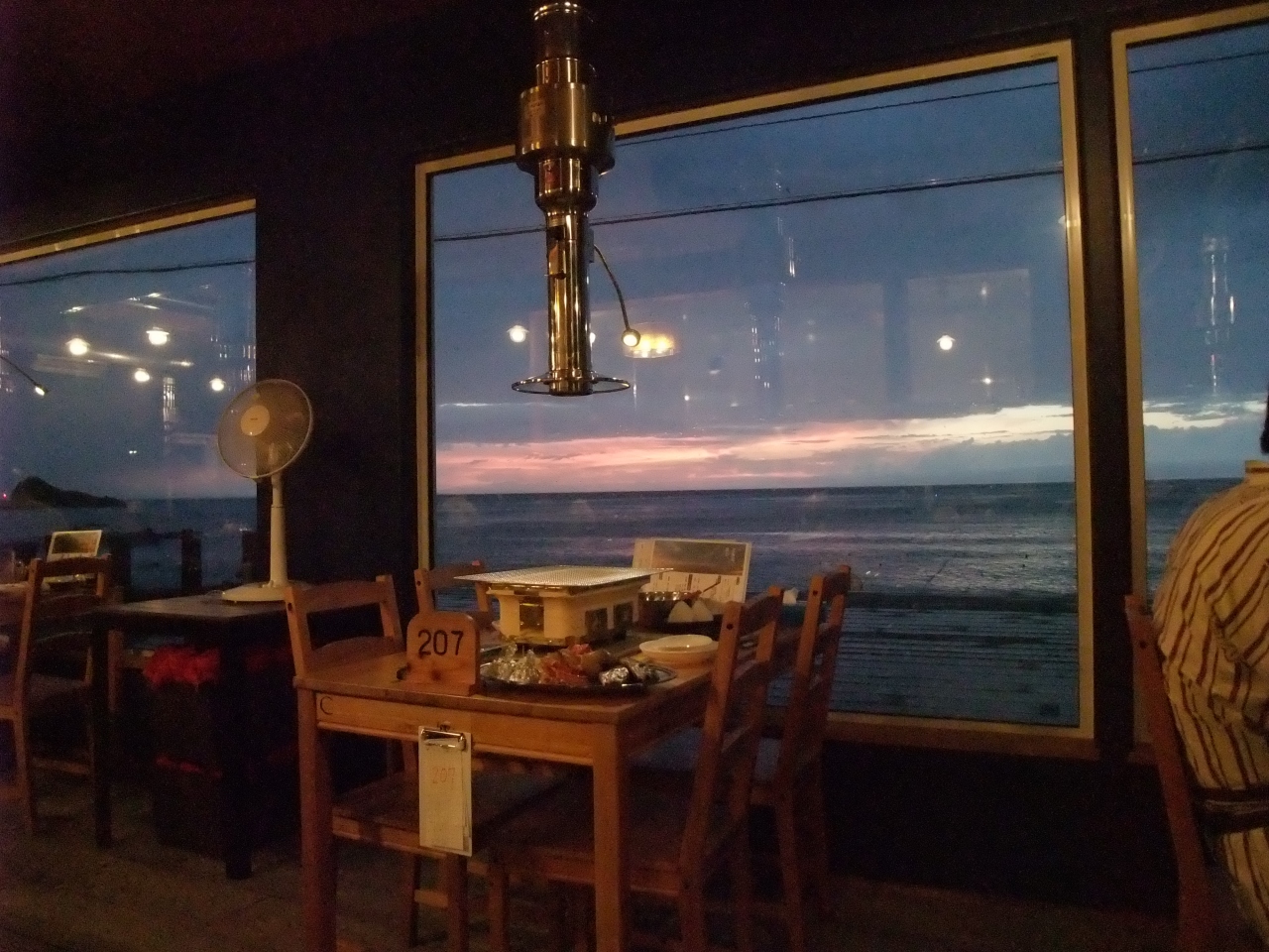 食事は海沿いの別館でしたが、炭火焼などどれもおいしかったです。量が少なめなので、せめてごはんがおかわりできたらよかったなと思いました。(ごはんはおにぎり1つだけだったと思います)