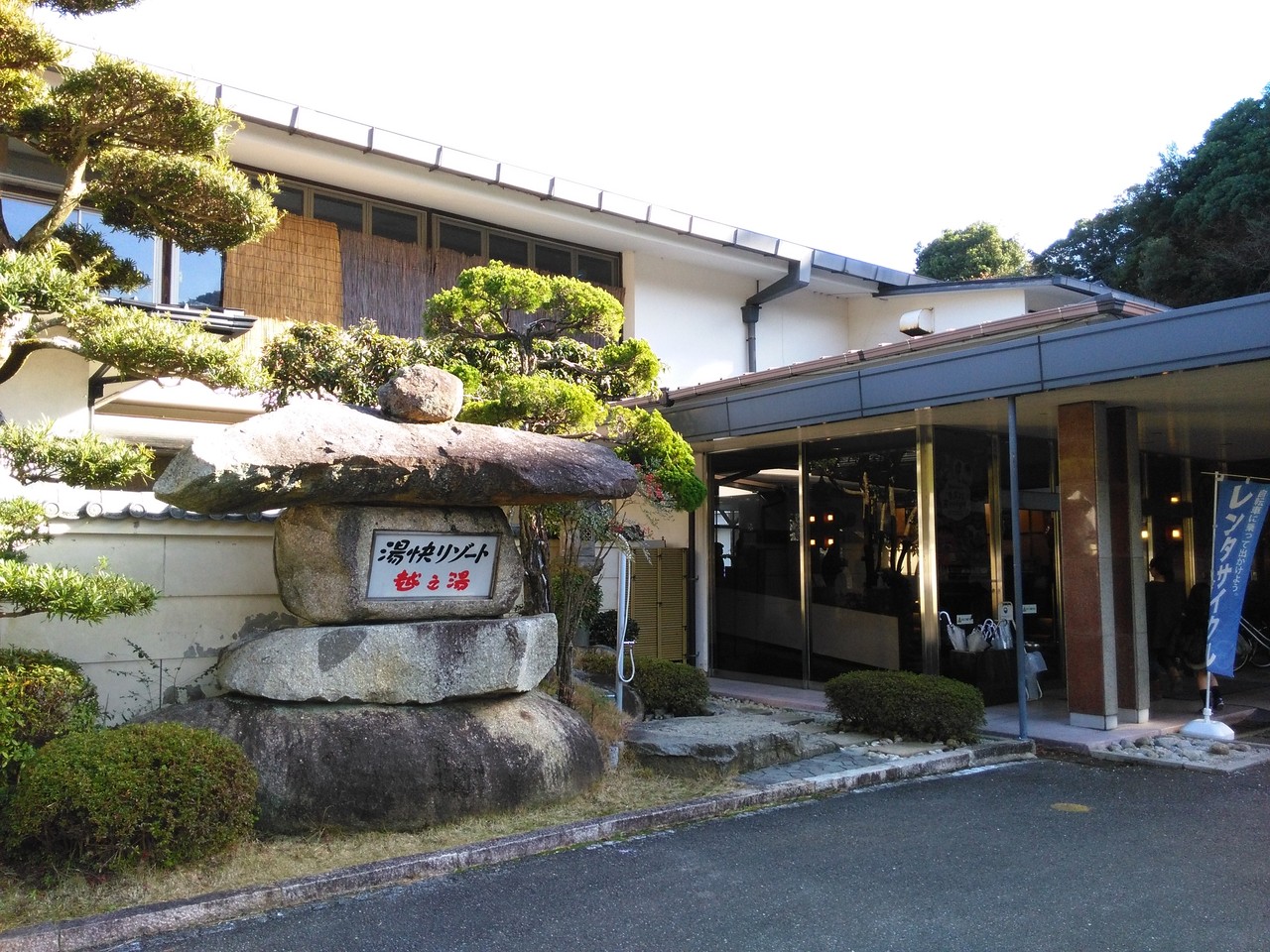 勝浦の魚市場から少し南に進み、トンネルとトンネルの間に入口がありました。油断していると通り過ぎてしまうような雰囲気ですが、奥に進むと立派な温泉旅館がありました。