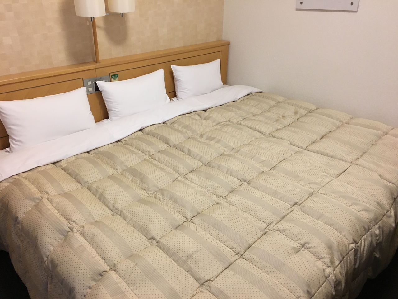 小学生の子供と泊まれる広さのベット。2つ連結で240cmのベット。