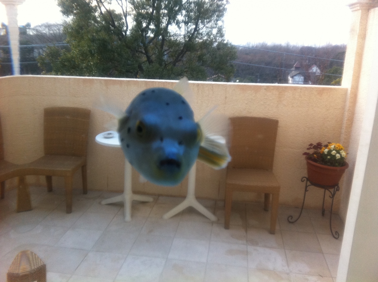 テラスのお風呂と部屋の仕切りがガラスで、なんと水槽の中に熱帯魚が泳いでいました。