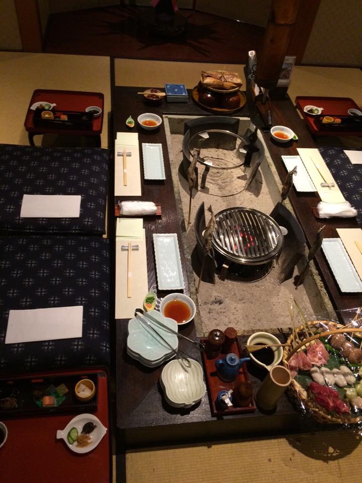 夕食は炭火焼き料理。毎回メニューは変わりませんが、それを頂きに行っているので全く問題なし。