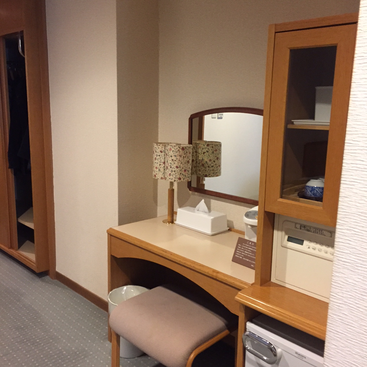 - 広さはある。和洋室はベッド2台。布団はセルフサービス。