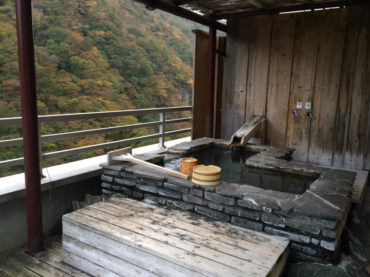 ふるさと旅行券を利用しての宿泊です。客室露天風呂は岩風呂で、24時間源泉かけ流しは贅沢です。最上階7階にあり、紅葉もほんのり色づき始め…温泉も気持ち良いのでずっと入っていられる。宿の外に野天風呂もあり温泉三昧が出来ました。そして夕食は、部屋食もありましたが、今回は囲炉裏料理を選択しました。全体的に料理は美味しかった。