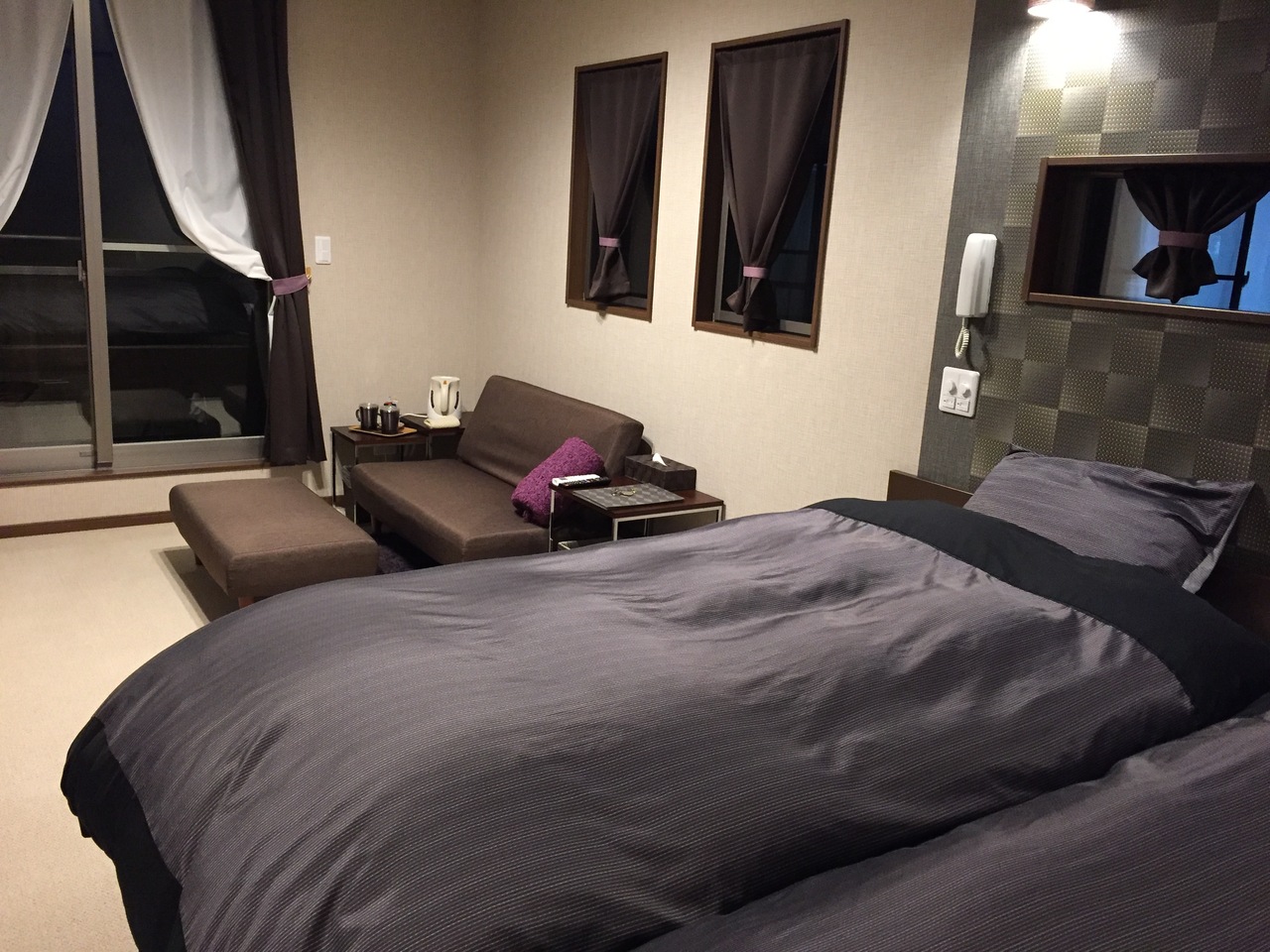 お部屋では、スリッパまたは靴下です。ジャグジーみたいなゆったりとしたお風呂でした。