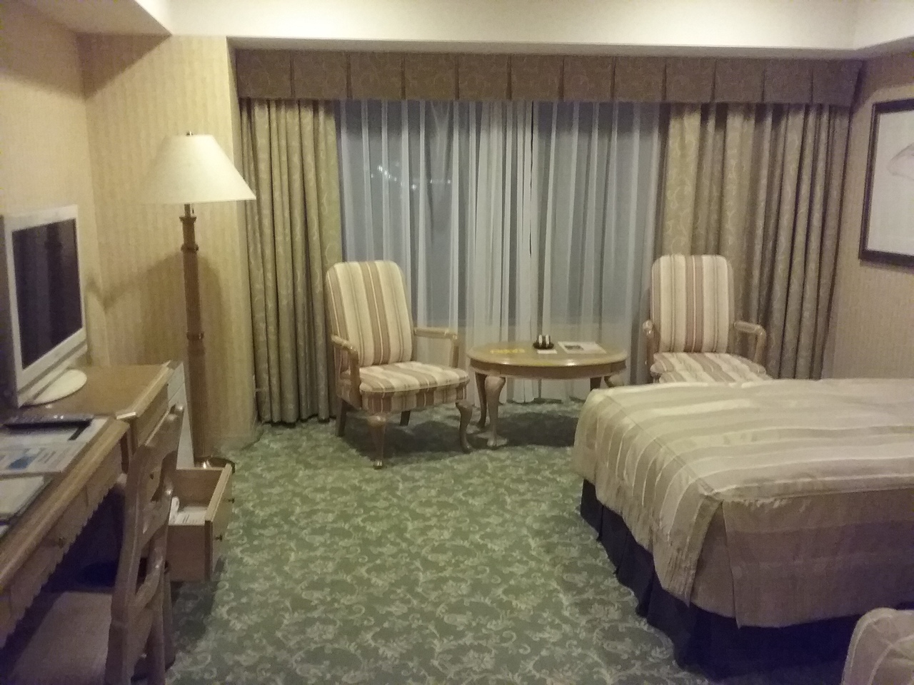 クラブツーリズムのツアーで利用しました。飛騨高山の高台にある大型リゾートです。お部屋はほとんどが洋室で清潔で広めの造りです。別棟の5階と7階に大浴場があり、部屋からはかなりの移動距離でした。移動中とても寒くお風呂の帰りも湯冷めしてしまいました。部屋にお風呂エコバッグや濡れたタイルを入れるバッグが備えつけられていたのは便利でした。大浴場は露天風呂が色々種類があり大きいですが、それ以上に人があふれていました。90%以上はツアーバスの客のようで、ほとんどが同じ行程で同じ時間にチェックインするため混むんだと思います。団体用の朝食会場も激混み。30分後に出直しました。中国人観光客も多いです。ステキなホテルですが、バスツアーの私たちには落ち着かない滞在となりました。