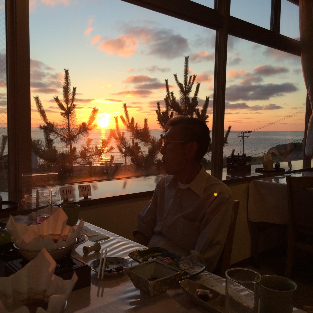 ちょうどレストランの窓から綺麗に夕陽が見える時期だったようで、ラッキーでした。