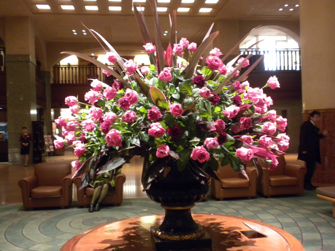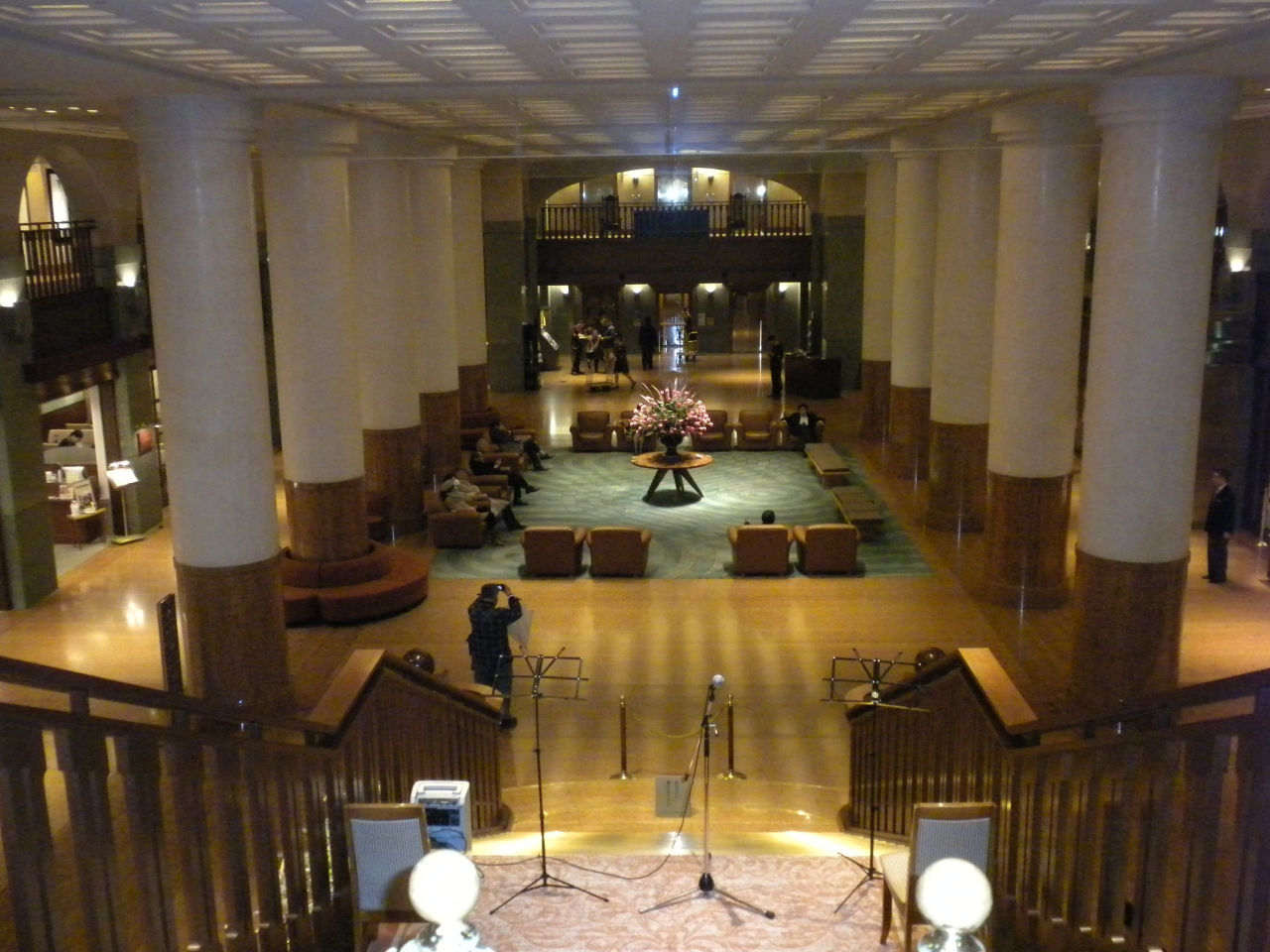 神殿風の太い柱と天井の高い広々としたスペースは流石に堂々たるもので、世界に誇る日本の京都のホテルとして恥ずかしくない風格です。