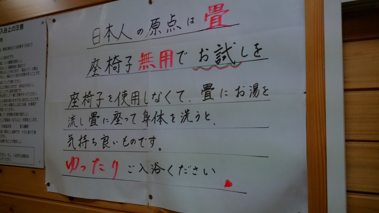嬉野温泉街の宿を予約する時に「畳敷き浴場」と書かれていたので予約をしました。サイトで書いている通りに大浴場に畳が敷かれていました。到着して1回目の入浴の時は椅子に座りましたが朝ぶろの時は旅館が進めている畳に直に座ってくださいと書いてあったので体験してみたところ気持ちよかったです。