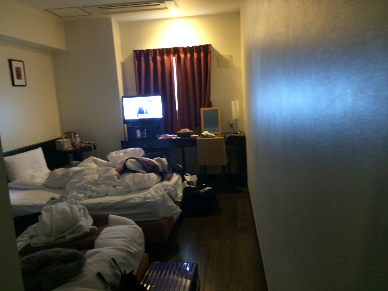 部屋自体はそんなに広くはないけどベッドは広かったです。また、バストイレも広くてよかった。