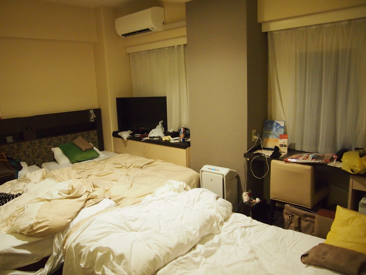 地下鉄の淀屋橋から、徒歩で10分弱のビジネスホテルです。綺麗にしてるが、ちょっと部屋が狭いのは否めません。ツインにエキストラベット利用だったからかも。面白いのは、シングルの部屋をつなげたような部屋の作りで、バス、トイレそれぞれ二つあったのが、」便利やったです