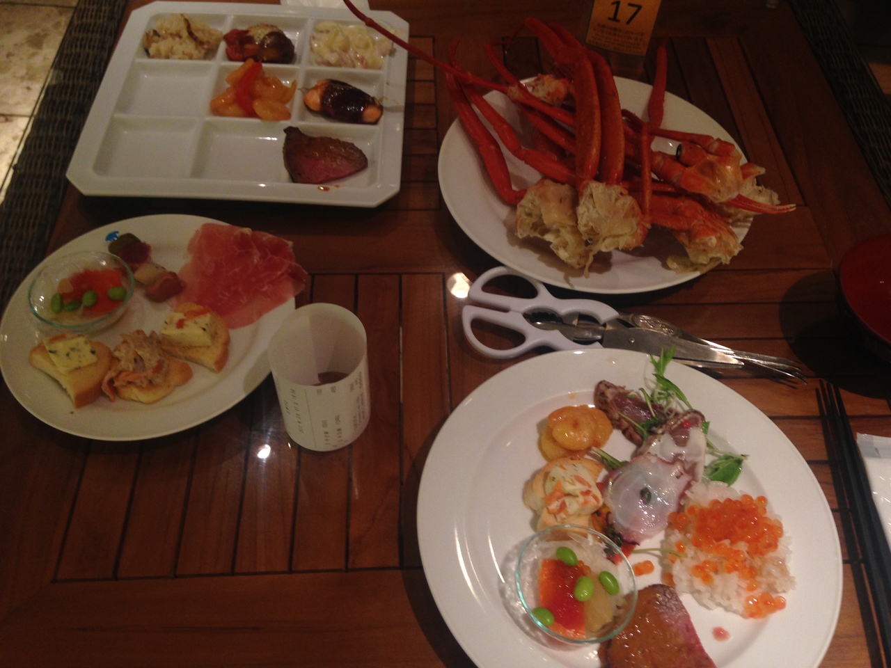 夕食バイキングは蟹ありローストビーフありで品数も多くてよかったです。