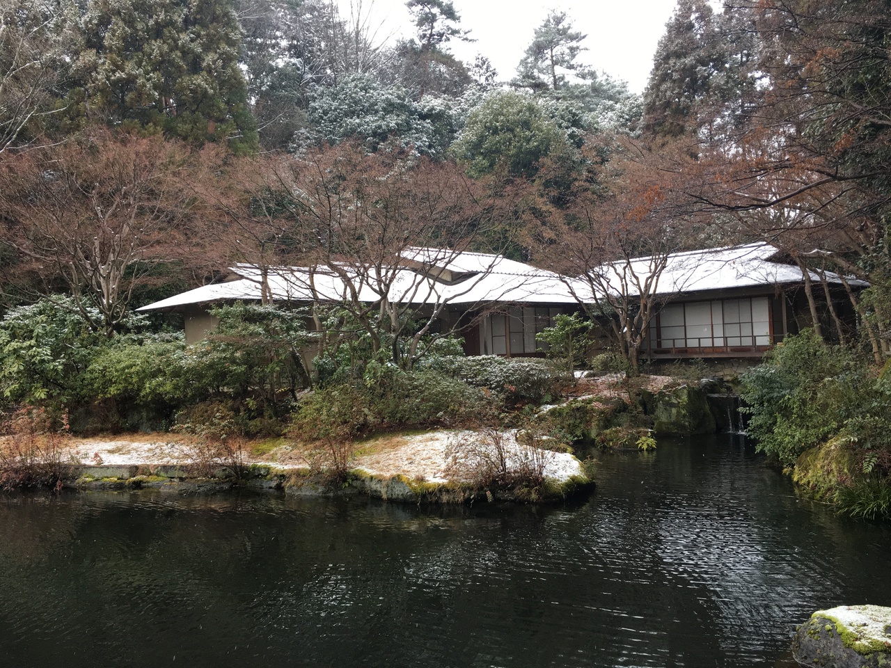 外には庭園があり、雪が降ると京都らしい風情を感じることができました。