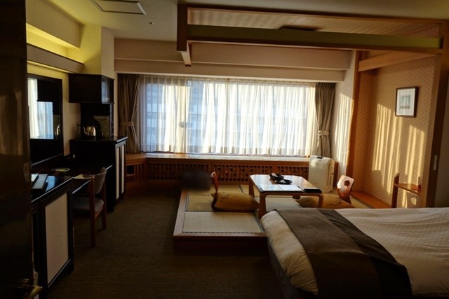 お部屋は部屋指定なしのスタンダード和洋室で広かったです。窓からは社員寮?アパート?が見えました。古いのは承知でしたが、暖房調節の所にすごい埃がたまっていたり、ユニットバスではカビかサビなのか、黒くなっている箇所が多く、ちょっとがっかり。お茶菓子は3種類、飲み物はお茶・コーヒー・紅茶と豊富でした。
