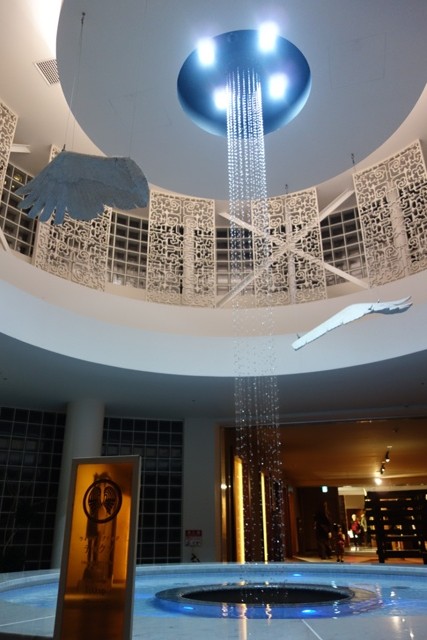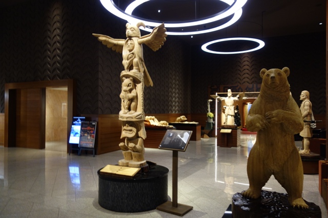 ロビーにはアイヌ文化の木彫りの展示があったり、遊久の里との連絡通路にもアイヌ文化の展示物がありました。